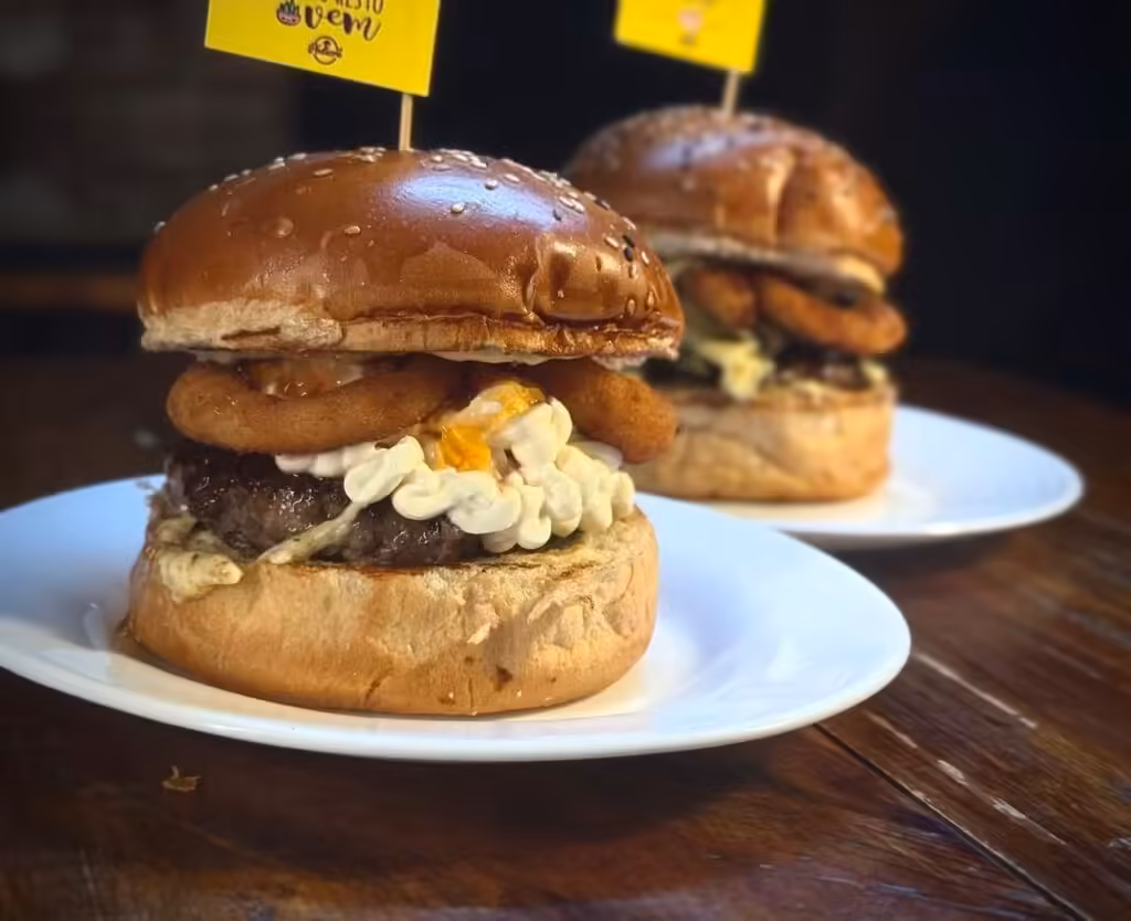 O primeiro é o Amostradinho, feito com pão brioche, blend de 130g de carne bovina, queijo gorgonzola, geleia de pimenta, cebola empanada e molho especial da casa. O hambúrguer com sabor marcante promete deixar a experiência ainda mais única.