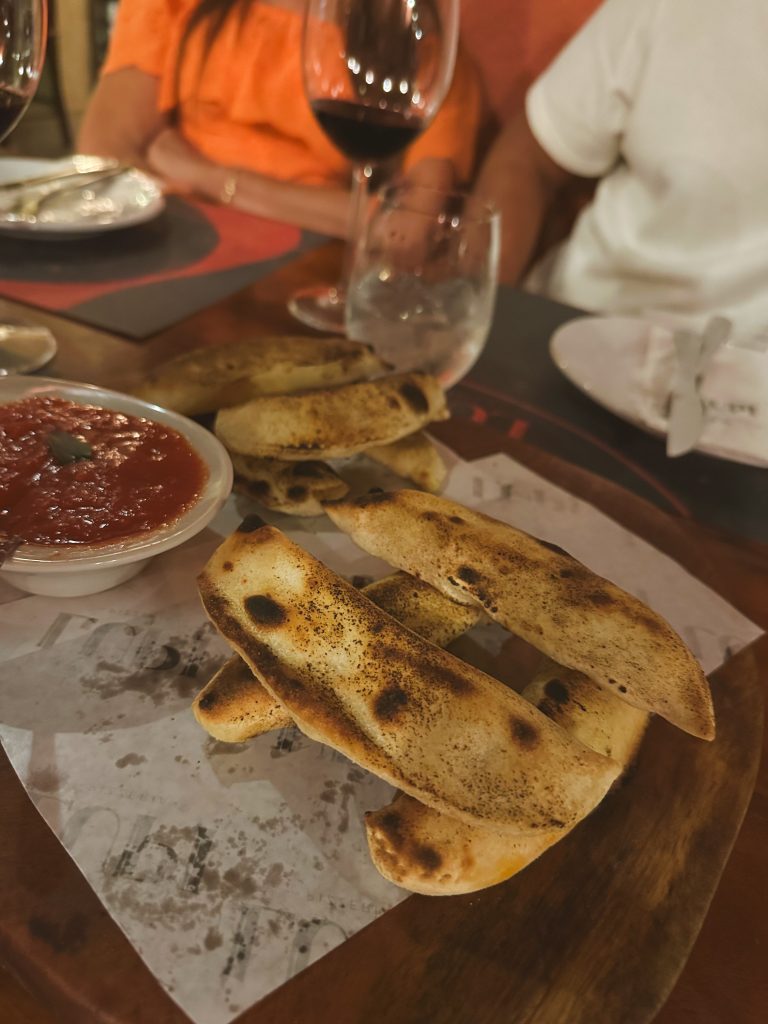 Outro destaque são sabores Marinara (pomodoro da casa com manjericão) e a Caprese (com toamte caqui fatiado, mozzarella de búfala, manjericão e pesto de azeitonas pretas). Minha favorita: Cacio e Pepe (molho clássico a base de pimenta, muçarela, provolone, grana padano, burrata e manjericão).