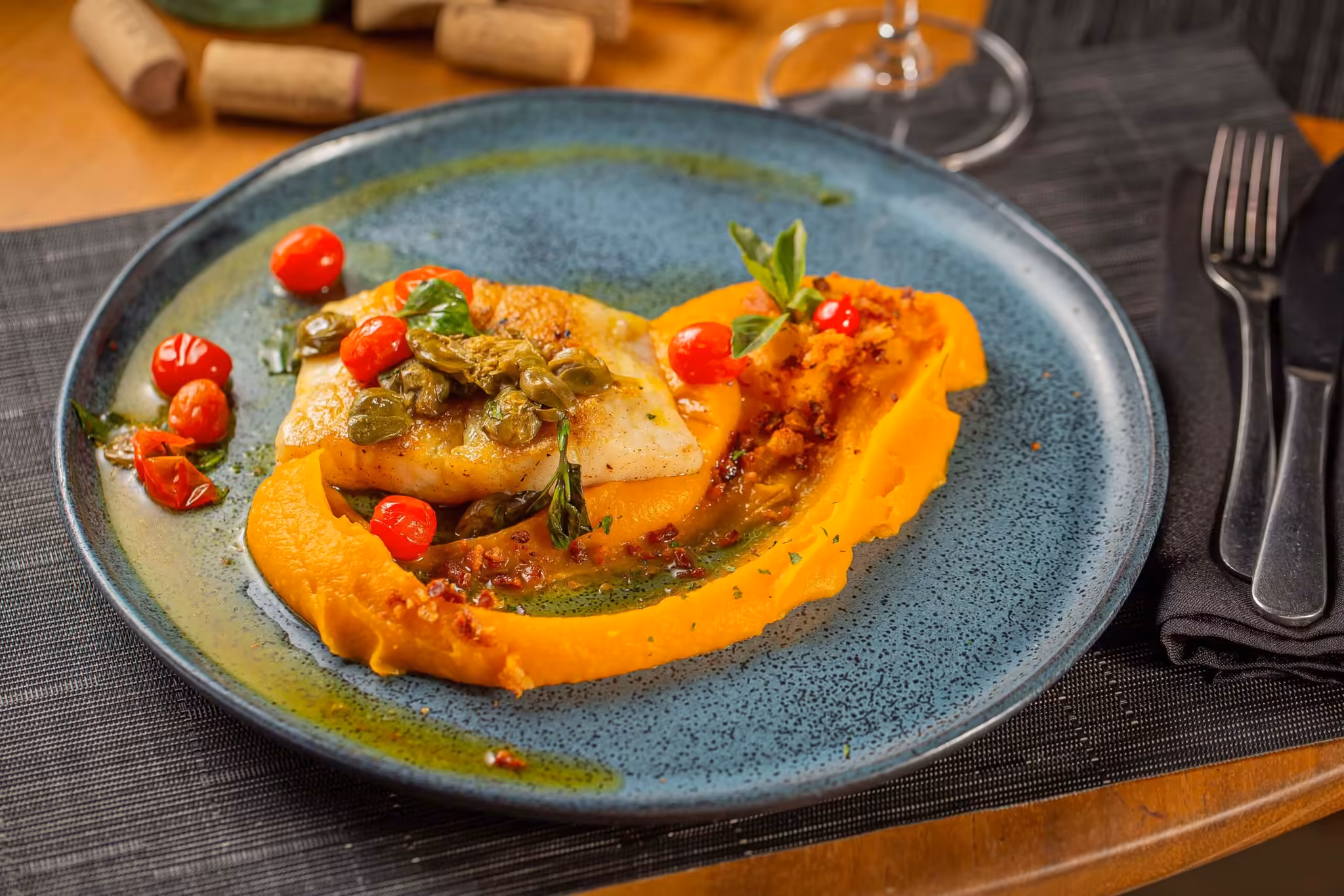 Os que preferem peixe, há o Bonne Pescada (R$69). Trata-se de uma pescada amarela, grelhada, ao molho cítrico de alcaparras e tomate confit. Ainda acompanha purê de abóbora e crocante de bacon.